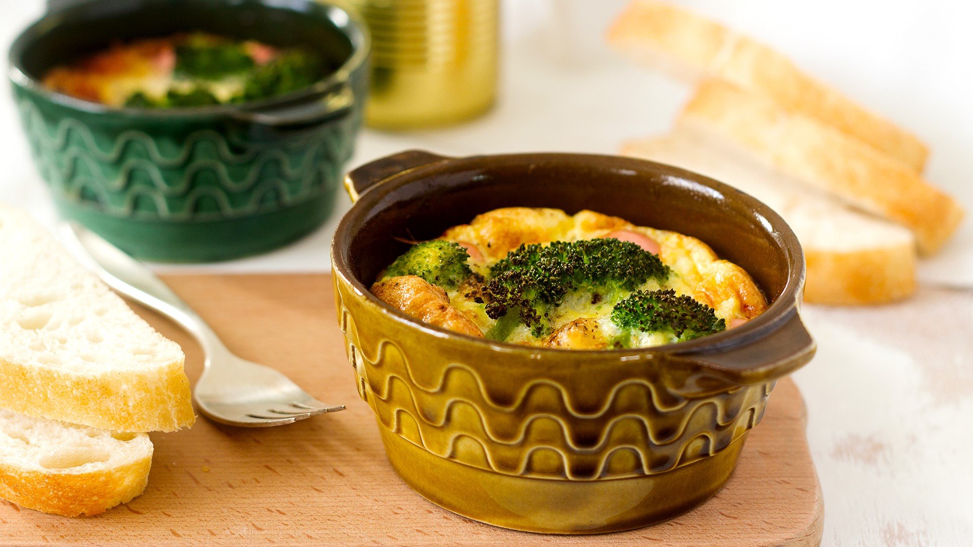 Гювечета с яйца, броколи и кренвирши