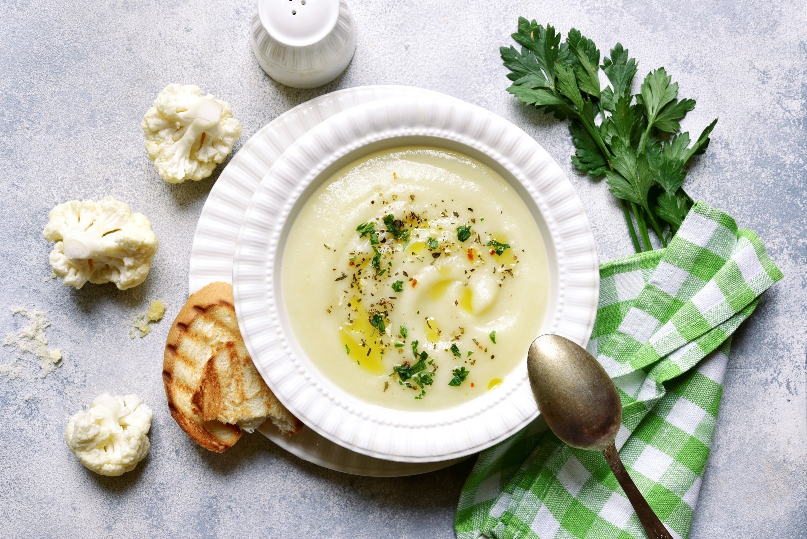 Крем супа от печен карфиол с къри сметана