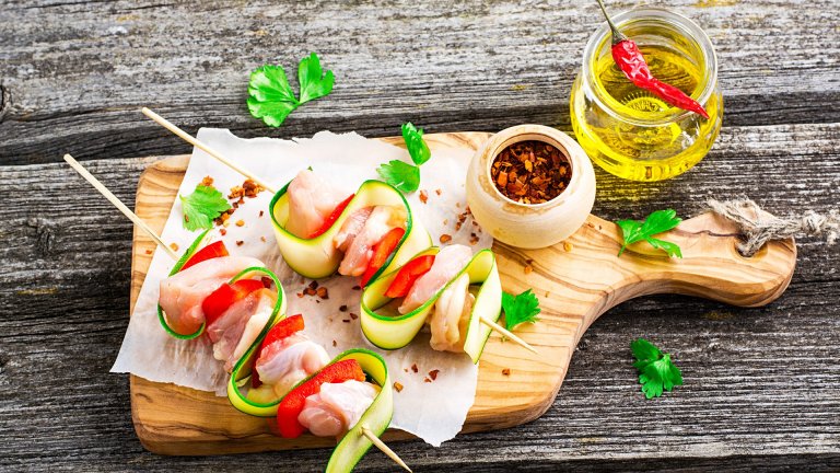 Шишчета с пилешко и тиквичка