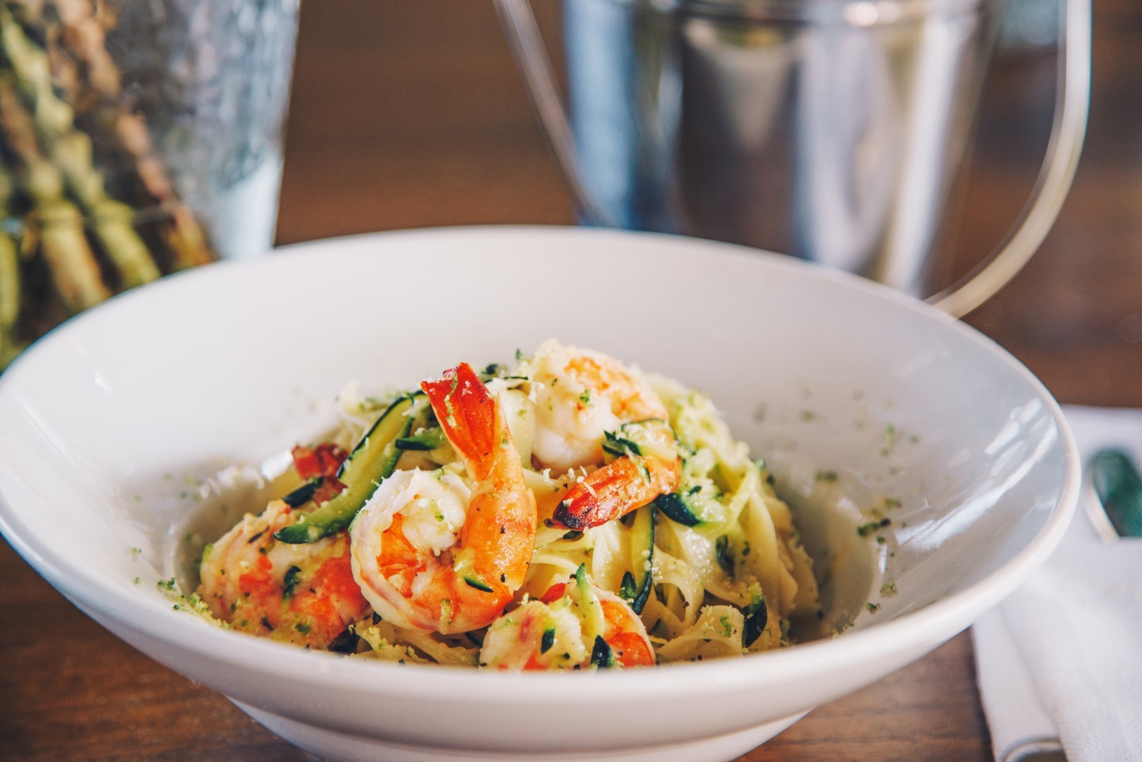 Талиатели с тиквички, скариди и лимон