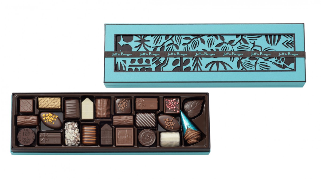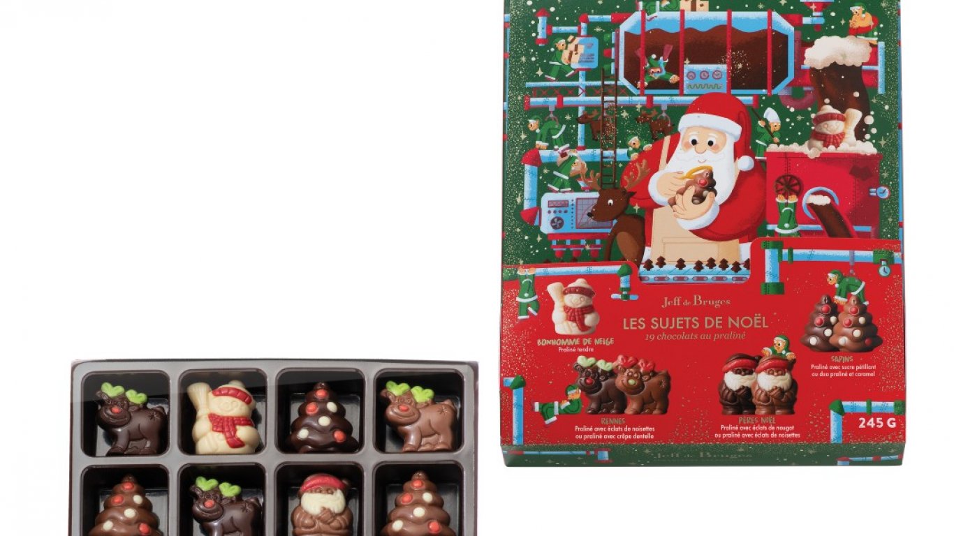 Формите на шоколадово изкушение също излизат отвъд класиката. Освен традиционните бонбони, в света на Jeff de Bruges присъстват трюфели, барчета, хрупкави "Жулиети", деликатните "Гюстави" - бисквитка, поставена върху капка шоколад, както и най-новата линия "Божествени десерти", където шоколадът среща сладкарското изкуство в още по-изтънчена форма.