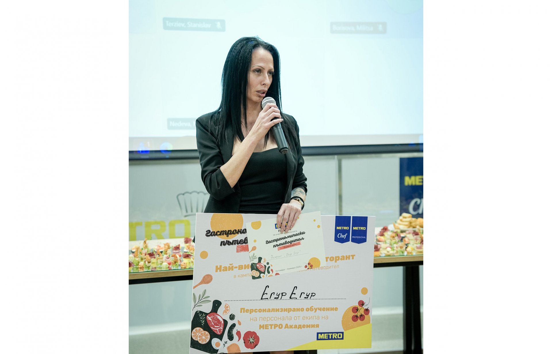 Сред отличените тази година са ресторанти от Варна, София, Бургас и Карнобат. Варненският Pasta Station Gigli спечели голямата награда от 2000 лева за най-много посещения. Това е второ поредно признание за екипа, който вече две години впечатлява гостите с модерния си прочит на италианската кухня и умелото използване на продуктите METRO Chef. Софийският "Егур, Егур" получи персонализирано обучение, разработено специално за заведението от шеф-готвачите на МЕТРО Академия след индивидуална оценка на нуждите на екипа. Пет други ресторанта- механа "Нашенци" и "Корнер 101" (София), ресторант "Медуза" (Бургас), "Неразделки" (Варна) и ресторант "Перла" (Карнобат), получиха ваучери за кулинарни курсове в МЕТРО Академия.