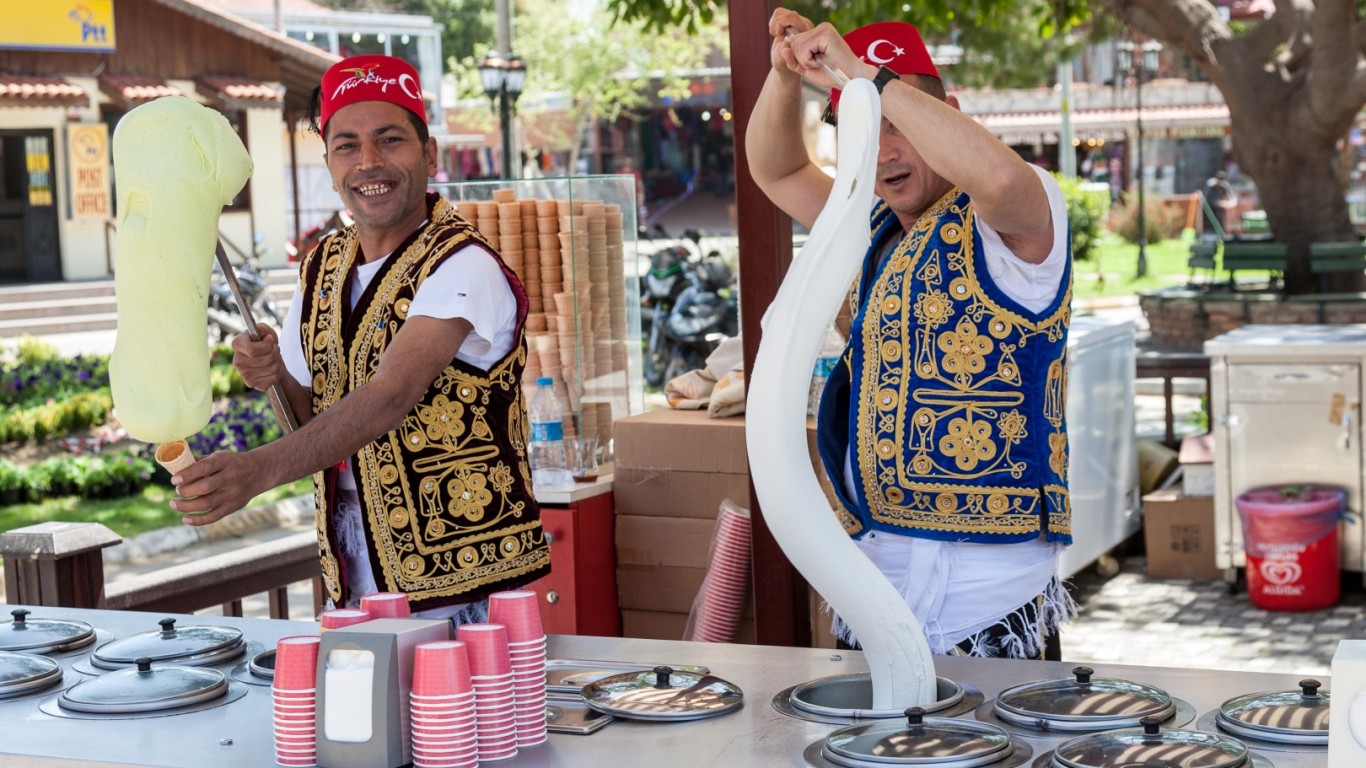 Той носи името на турския град Кахраманмараш, сгушен в югоизточната част на страната, където векове наред майстори внимателно предават тайната на рецептата. За разлика от повечето сладоледи този съдържа салеп - прахообразен екстракт от грудките на диворастяща орхидея. Именно той придава на десерта плътната, почти дъвчаща текстура, която позволява да бъде разточван, рязан и дори въртян на пръчка. Според преданието в османско време местните го предлагали не във фунийки, а като плътни, студени блокове, които се режели с нож.
