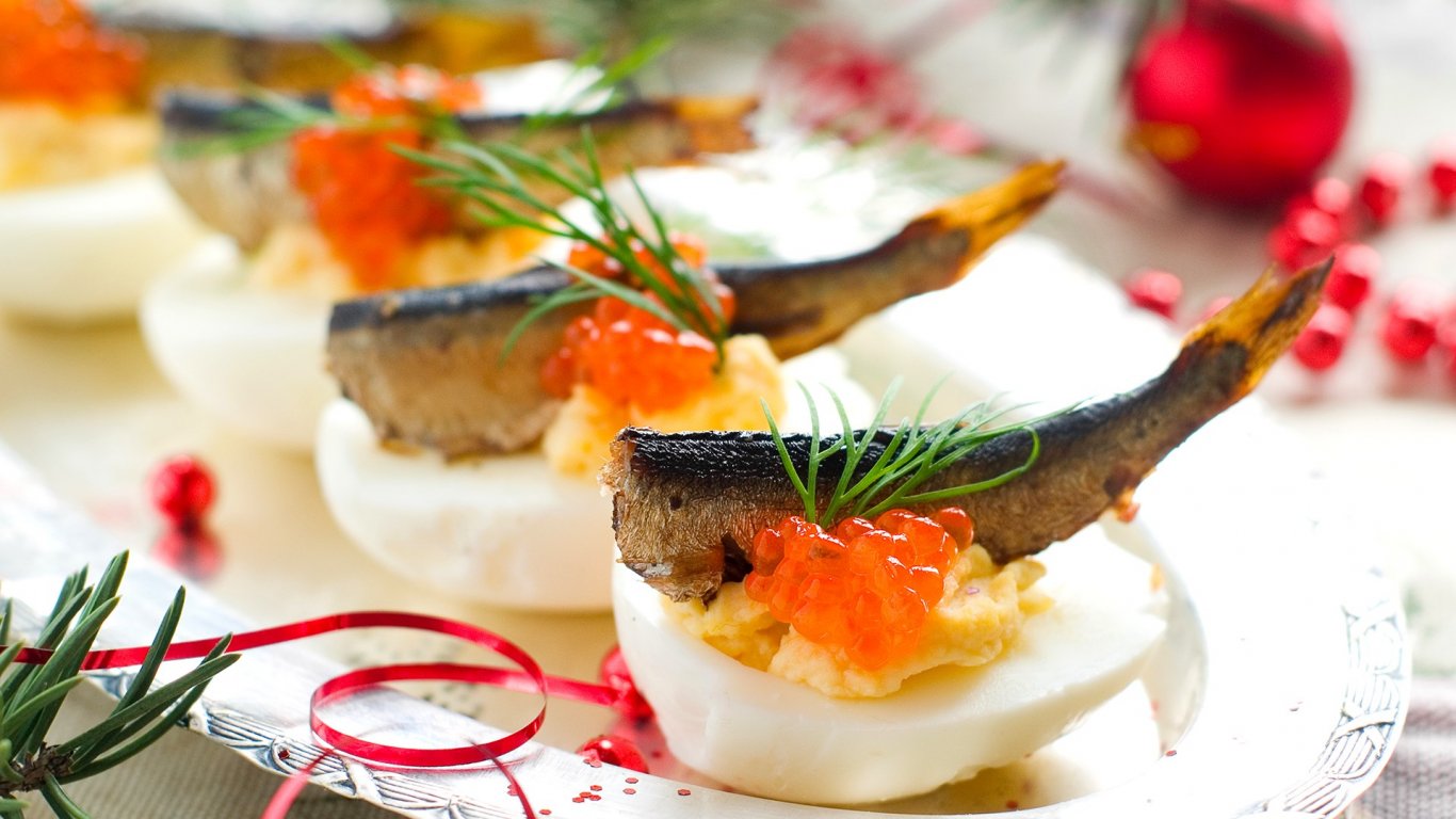 - Най-отгоре се подрежда по една рибка от шпротите и хапките се сервират.